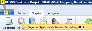 Sie können der Schnellzugriffleiste weitere Funktionen zuweisen, indem Sie mit der rechten Maustaste auf ein entsprechendes Element des Ribbons klicken (hier beispielhaft die Artikeleingabe) und im Kontextmenü Füge der Symbolleiste für den Schnellzugriff hinzu auswählen.