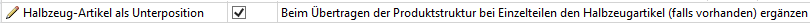Eingestellt wird dies im Konfigurationsmanagement (ISDConfigEditor), unter Aktive Konfiguration (Basiskonfiguration) > PDM > HiCAD-HELiOS Schnittstelle > Produktstruktur mit Setzen eines Hakens neben Halbzeug-Artikel als Unterposition.