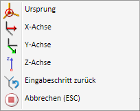 Wollen Sie einen oder mehrere Eingabeschritte zurückspringen, um die Eingabe zu korrigieren, dann wählen Sie (ggf. mehrfach) die Funktion Eingabeschritt zurück. Mit Abbrechen wird die Funktion abgebrochen. Im Kontextmenü zur Richtungsbestimmung finden Sie zusätzlich Funktionen, mit denen Sie die X-, Y- oder Z-Richtung des aktuellen Koordinatensystems übernehmen können.