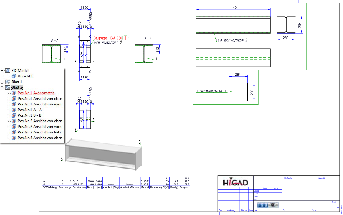 Werkstattzeichnung Fall 2 - Strukturbaugruppe