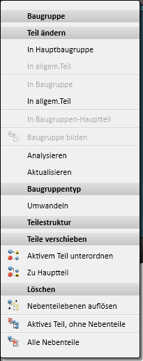 Zur Bearbeitung der Teilestruktur stehen verschiedene Möglichkeiten zur Verfügung: