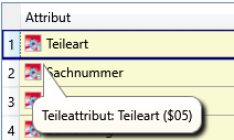Wenn Sie mit dem Cursor auf das Symbol oder zeigen, wird Ihnen der Name des entsprechenden Attributes angezeigt.