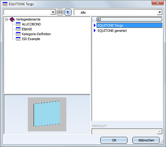 Hier wählen Sie das gewünschte Halbzeug sowie die Befestigungsart - Tergo+ oder Tergo.