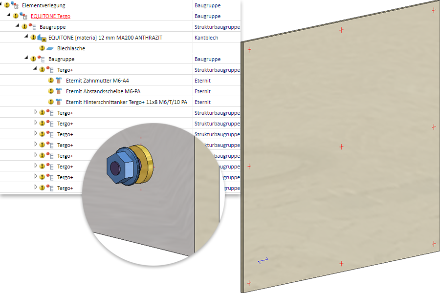 Für Eternit®-Platten vom Typ EQUITONE genietet stehen im Dialogfenster folgende drei Registerkarten mit Einstellungsmöglichkeiten zur Verfügung.