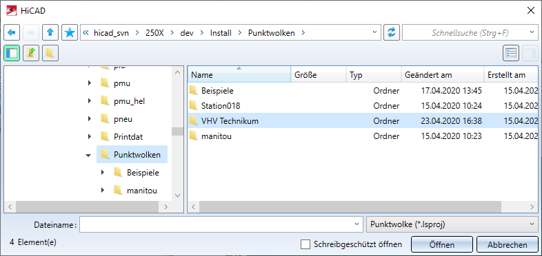 Wählen Sie im Dialogfenster die neue Punktwolke bzw. den neuen Punktwolkenpfad und klicken Sie auf Öffnen.