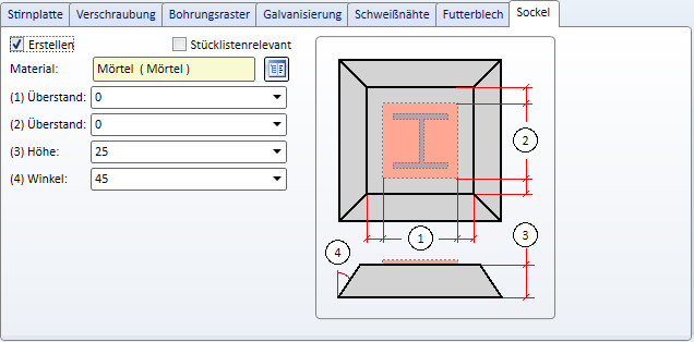 Soll ein Sockel eingebaut, dann legen Sie auf dieser Registerkarte die Daten für den Sockel fest.