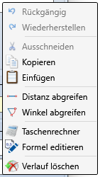 - Wenn Sie mit der rechten Maustaste in ein Werteingabefeld klicken, öffnet sich ein Kontextmenü, mit dessen Funktionen Sie u. a. Winkel und Längen aus vorhandenen Konstruktionsobjekten in das Eingabefeld übernehmen können.