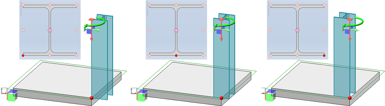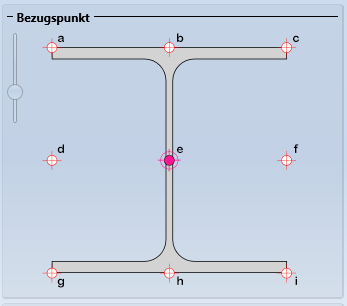 Voreingestellt ist der Schwerpunkt (e) des Profilquerschnitts. Soll ein anderer der vordefinierten Bezugspunkte verwendet werden, dann klicken Sie im Dialogfenster einfach auf das entsprechende Punktsymbol.
