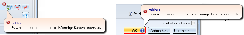 Nicht korrekte oder fehlende Eingaben werden im Dialog mit dem Symbol