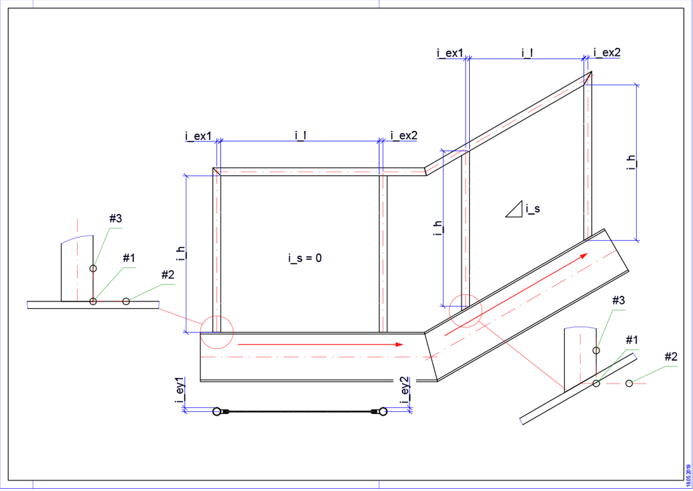 Wichtiger Hinweis zu Pfosten: Beim Pfosteneinbau sind die 1/2 Pfostendicke in x- bzw. y-Richtung keine Eingabewerte des Geländerkonfigurators (i_ex..., i_ey...), sondern die Werte müssen von der Pfostenvariante erzeugt werden. Deshalb dürfen in der Variante nicht die Variablen i_ex und i_ey verwendet werden, sondern stattdessen ex und ey. Diese Werte stellt der Geländerkonfigurator dann in den Variablen i_ex bzw. i_ey der Füllung zur Verfügung. siehe auch Tipp |