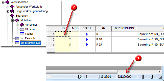 Die Kennung (Datensatz-ID) (1) und die Tabellen-ID (2) finden Sie im Katalogeditor, wenn dort die entsprechende Tabelle ausgewählt ist.