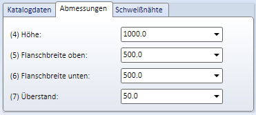 Hier legen Sie die Gesamthöhe des Profils, die Breite der Flansche und den Überstand der Flansche gegenüber dem Steg fest.