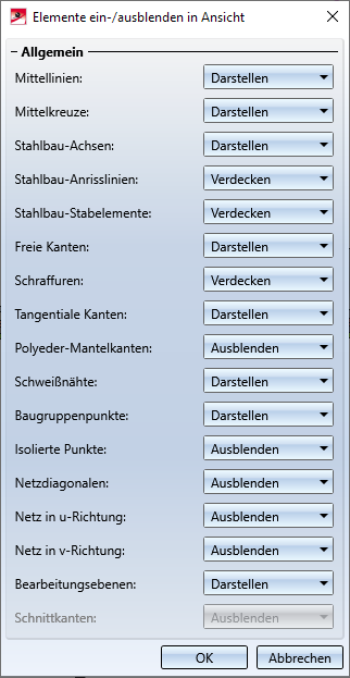 Ansichten > Eigenschaften > Elemente ein-/ausblenden in Ansicht