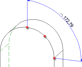 bemaßt einen durch drei Punkte bestimmten Bogen. Diese Punkte sind ein Zwischenpunkt auf dem Bogen sowie die beiden Fußpunkte (Anfangs- und dem Endpunkt).