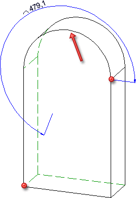 bemaßt einen Bogenabschnitt. Bestimmen Sie den Mittelpunkt und dann die beiden Fußpunkte des zu bemaßenden Bogenabschnittes.