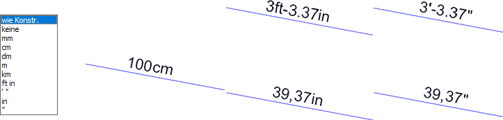 - Bei den Maßeinheiten ft , in und " (Zoll) können die Nachkommastellen der Maßzahl auch als Bruch dargestellt werden. Dazu stehen unter Bruchdarstellung die Optionen
