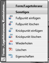 Im Kontextmenü für Form-/Lagetoleranzen finden Sie weitere Funktionen zur Bearbeitung von Form-/Lagetoleranzen.