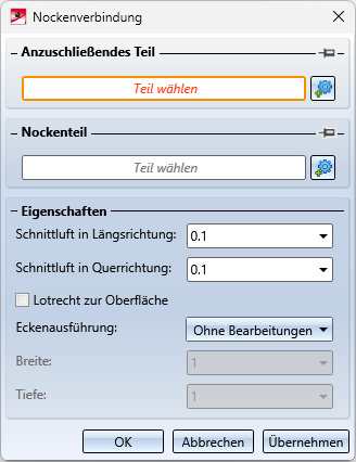Mit dieser Funktion fügen Sie Nocken an ein Teil an. Dazu wird das abgebildete Dialogfenster angezeigt:
