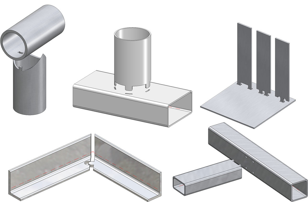 Die Nockenverbindung erzeugt an einem Teil Nocken und an einem anderen Teil die Schlitze (Löcher), in die diese Nocken passen. Nocken lassen sich an nahezu allen Teiletypen anbringen, auch an dünnwandigen Solids. Dabei können Sie festlegen, wie die Nocken und entsprechenden Schlitze aussehen und wie sie entlang der ausgewählten Teile angeordnet werden sollen. Beispielsweise lassen sich einzelne Nocken frei platzieren, die Nocken lassen sich auch ungleichmäßig verteilen und sie können unterschiedliche Randabstände an den Seiten haben.