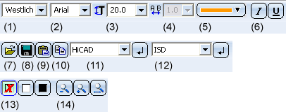 Das Feld bestimmt den Schriftschnitt und die Neigung des Textes bei Verwendung von HiCAD Fonts. Bei einem Seitenverhältnis kleiner als 1 ist der Text gestaucht. Analog dazu ist er bei einem Seitenverhältnis größer als 1 gestreckt. Bei einer Neigung von 0.00 Grad wird der Text normal dargestellt. Bei einer Neigung von 15.00 Grad wird der Text kursiv dargestellt.