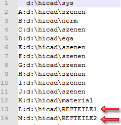 Um die Ordner-Voreinstellung für extern referenzierte Teile zu ändern, editieren Sie die Datei FILEGRUP.DAT in Ihren HiCAD exe-Verzeichnis.