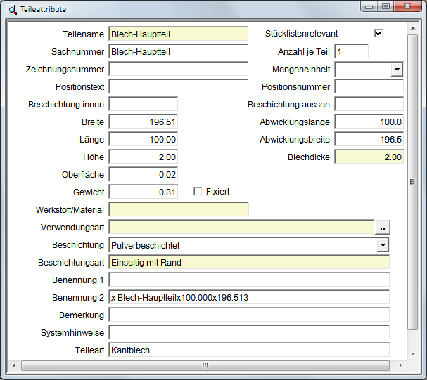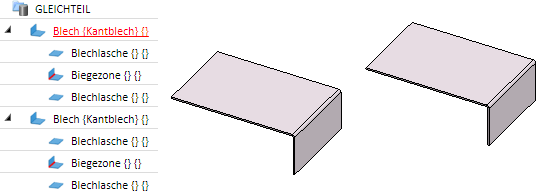 - Der Teiletyp stimmt mit dem des gewählten Teils überein. Beispielsweise sind ein Quader und ein Kantblech trotz gleicher Abmessung zwei nicht gleiche Teile!