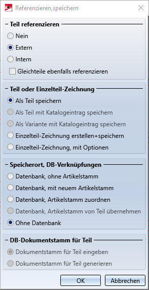 Ordner für extern referenzierte Teile (3D) • Einstellungen für die Referenzierung (3D) • Teil speichern