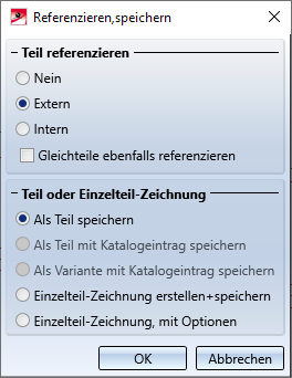 - Ein extern referenziertes Teil lässt sich nur dann als Teil oder Variante in einem Katalog speichern, wenn es zunächst als referenziertes Teil gespeichert wird (