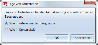 Einstellung Aktualisierung: Position Diese Einstellung bestimmt, wie die Lage von Teilen einer referenzierten Baugruppe bei deren Aktualisierung behandelt wird. Dazu wird das folgende Dialogfenster angezeigt: