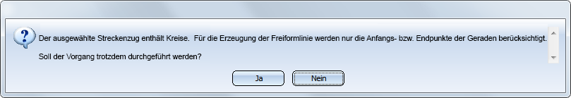 Bei den oben aufgeführten Funktionen wird geprüft, ob der ausgewählte Kantenzug Kurven enthält. Ist dies der Fall, dann wird eine entsprechende Meldung ausgegeben, beispielsweise