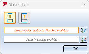 Mit dieser Funktion verschieben Sie Linienelemente und isolierte Punkte einer Skizze. Dazu wird das Dialogfenster Verschieben angezeigt: