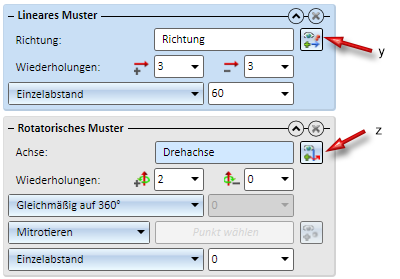 Mit dieser Funktion werden die Wiederholungen durch Angabe eines Richtungsvektors erzeugt.
