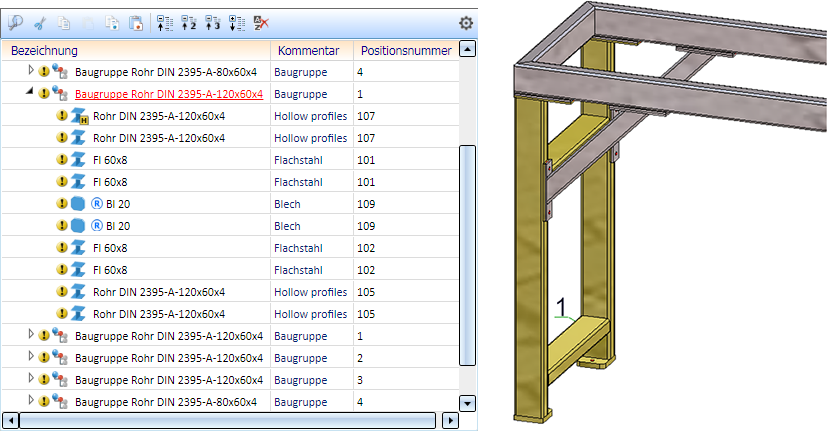 Die Abbildung zeigt den Ausschnitt eines Tragwerks. Wir betrachten die Baugruppe mit der Positionsnummer 1.