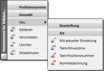 Ist das identifizierte Teil bereits beschriftet, dann wird die Beschriftung gelöscht. Als neue Beschriftung werden die aktuellen Einstellungen des Positionsnummernmenüs verwendet. Ist das Teil noch nicht beschriftet, wird die Beschriftung neu erzeugt. |