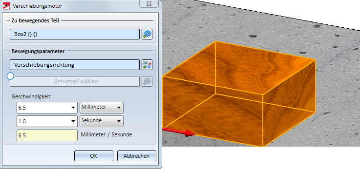Der Verschiebungsmotor_0 soll jetzt Box2 als Bezugsteil verwenden.