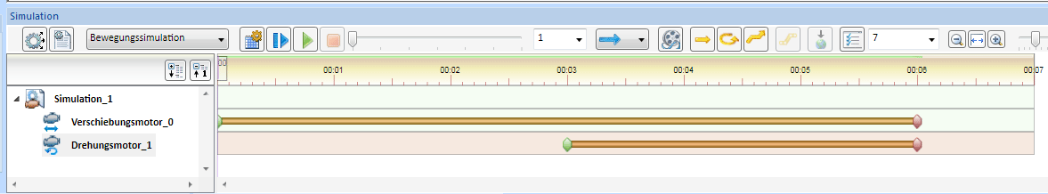 Wir verwenden das Beispiel aus der Bewegungssimulation mit den zwei Zeitintervallen, löschen aber die Motoren 1 und 3.