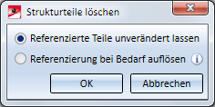 Die Punkte 4. und 5. betreffen auch Teile unterhalb von referenzierten Teilen. Wie hier verfahren werden soll, legen Sie nach dem Aufruf der Funktion im abgebildeten Dialogfenster fest: