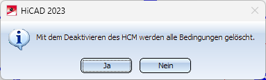 Enthält die aktive Skizze beim Deaktivieren bereits HCM-Bedingungen, dann erscheint folgende Meldung: