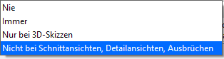 Die Darstellung des Rasterbezugs beim Erstellen von Skizzen und 3D-Skizzen mit dem Skizzierer lässt sich im Konfigurationsmanagement einstellen unter Systemeinstellungen > Skizzen und dort im Bereich Darstellung des Rasterbezugs.
