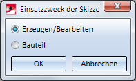 Um den Einsatzzweck einer Skizze zu ändern, verwenden Sie die Funktion Einsatzzweck ändern. Diese Funktionen finden Sie unter Skizze > Tools > Hilfs... sowie im Kontextmenü der Skizze unter Eigenschaften .