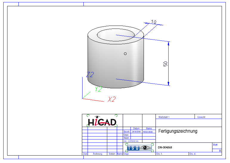 Für diese Baugruppe ist mit der Funktion Konstruktion > Speichern/Referenzieren > Teil... (Option Einzelteilzeichnung) eine Einzelteilzeichnung erstellt worden.