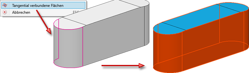 Aktivieren Sie diese Funktion, wenn bei der nächsten gewählten Fläche auch alle tangential anschließenden Flächen übernommen werden sollen.