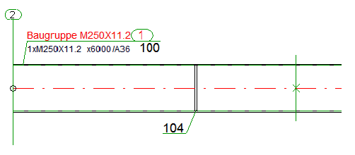 - An Beschriftungsfahnen des Rasters und des Raster-Untersystems können Maße gesetzt werden.