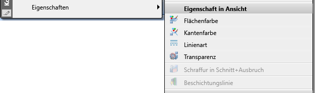 Neben den "normalen" Teileeigenschaften lassen sich Teilen auch Eigenschaften zuordnen, die nur für eine bestimmte Ansicht gelten. Diese Ansichtseigenschaften von Teilen ordnen Sie Teilen mit den Funktionen unter Eigenschaften > Eigenschaften in Ansicht des Kontextmenüs für Teile zu.