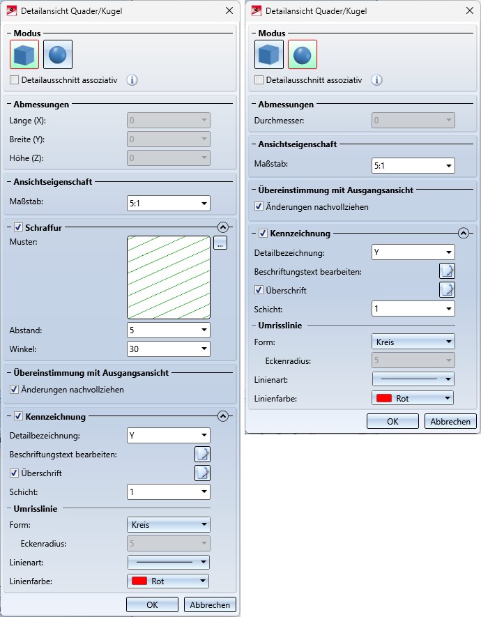 Ansichten > Neu > Detail > Detailansicht Quader / Kugel