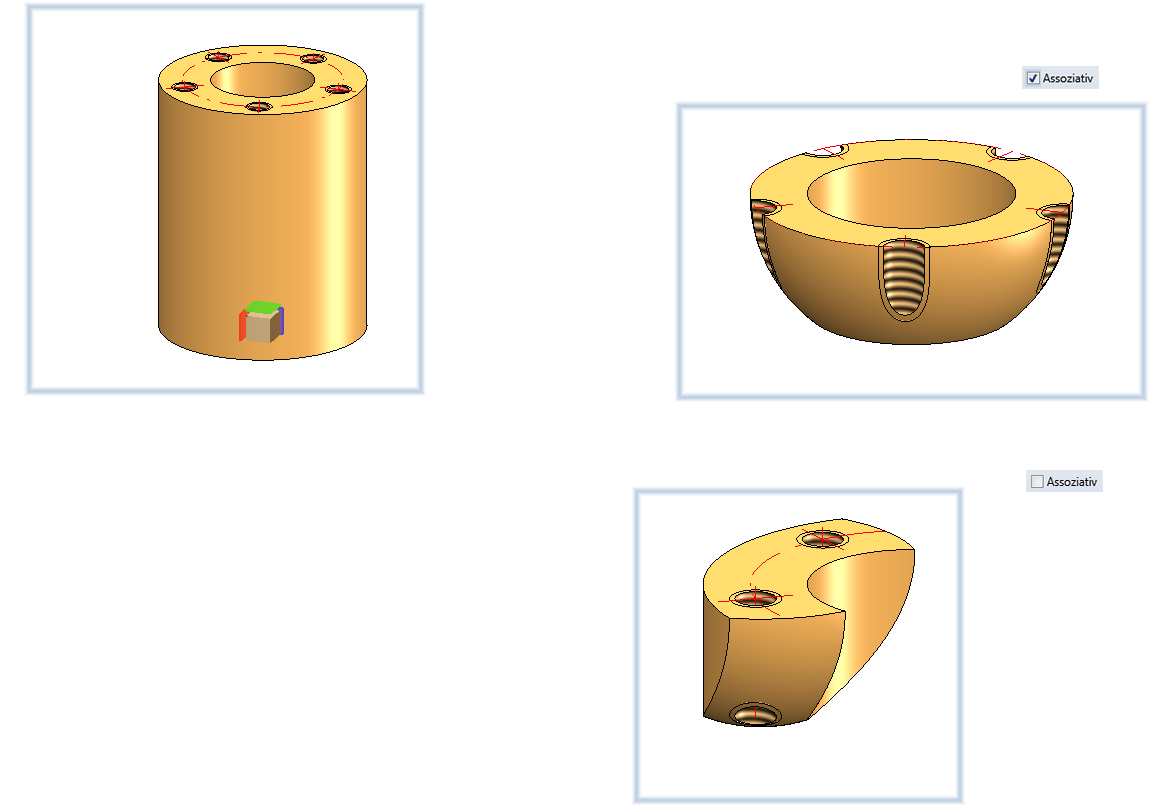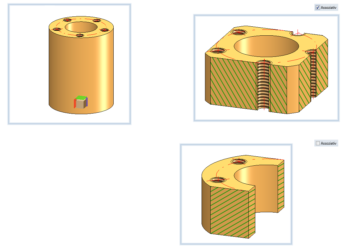 Mit dieser Funktion definieren Sie Detailansichten. Hier wird der Detailausschnitt nicht durch eine Skizze bestimmt; sondern durch Definition eines Quaders bzw. einer Kugel.