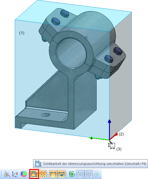 Die Abmessungen sind aktuell, die Abmessungsausrichtung entspricht dem Teilekoordinatensystems des Baugruppen-Hauptteils. |