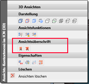 Die Funktion steht nur im Kontextmenü Ansichten zur Verfügung. Klicken Sie mit der rechten Maustaste auf einen Ansichtsrahmen oder auf den Namen einer Ansicht im ICN,