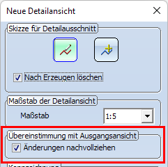 - Beim Löschen der Ausgangsansicht geht die Assoziativität der Detailansicht verloren. Die Detailansicht selbst ändert sich aber nicht.