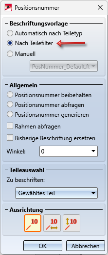 Ist die aktuelle Konstruktion kein Positionierungsmodell, dann wird die Positionsnummer des Teils aus der entsprechenden KRA-Datei geladen/aktualisiert.